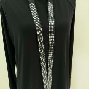 Joseph Ribkoff bling tunic featuring elegant embellished detailing that adds just the right amount of sparkle. This piece has a flattering, easy silhouette that works beautifully dressed up or styled casually. Purchased new for $214.