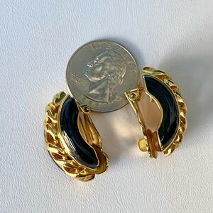 Tags: #VintageJewelry #StJohn #Designer #GoldEarrings #BlackEnamel #80sFashion #90sFashion #CostumeJewelry #StatementEarrings #Collectible