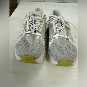 On Running Athletic Shoes - White, Silver and Neon Yellow (chartreuse) size 7