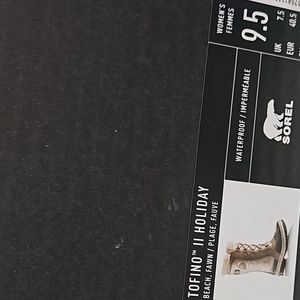 TOFINO II HOLIDAY WATERPROOF SOREL BOOT. THE COLOR IS BEACH,FAWN. THIS BOOT IS PRACTICALLY NEW CLEAN INSIDE NO STAINS WORN MAYBE TWICE.