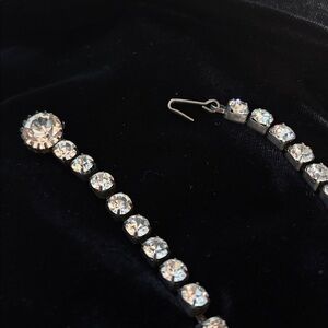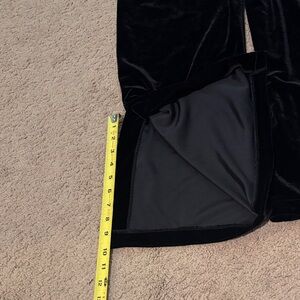 Chic black velvet jumpsuit by CDC. Features elegant sparkling detailed belt. Belt hook provides for ideal waist sizing. Ideal for stylish classy evenings. 90 percent polyester 10 percent spandex