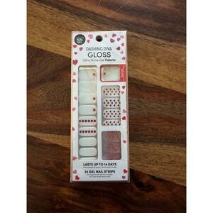 Dashing Diva Gloss Ultra Shine Gel Palette nail strip bundle provides salon-quality results without the dry time or soak-off removal. These chip-resistant strips are made with real gel for a high-shine finish that lasts up to 14 days. The set includes three distinct palettes: Light Hearted featuring romantic red hearts and pink glitter, Lapis Lazuli with deep navy tones and holographic mosaic accents, and Center Stage offering sophisticated burgundy, mauve, and plaid patterns. Each pack comes with a prep pad and nail file for easy application.
