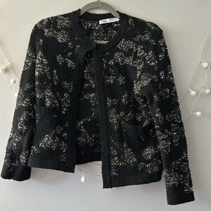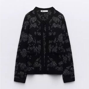 SEQUIN METALLIC THREAD KNIT CARDIGAN BLACK size S