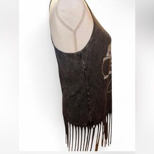 Shhh! I'm Hunting Cowboys Graphic Tank Top With Long Fringe Distressed Black Racerback Cowgirl Tee