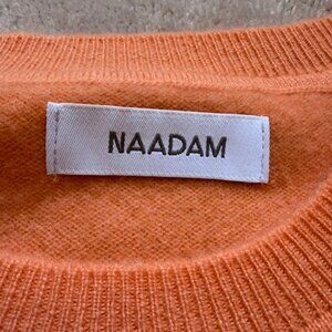 Cashmere tee/short sleeve sweater in a pale orange/tangerine color. Size S. Measures 17" pit to pit and 21" from back of neck to bottom. Very cute sweater. Never worn, the color doesn't work with my skintone unfortunately.