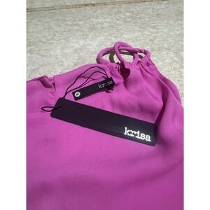 Striking Krisa asymmetrical blouse in women's size Medium, sold through REVOLVE and made in the USA. Designed in a vibrant pink hue with a modern one-shoulder silhouette featuring one long sleeve and one sleeveless side. Gathered shoulder detailing creates an elegant drape, while the lightweight woven fabric has a soft hand feel with subtle stretch for comfort. A standout piece perfect for parties, nights out, or special occasions where you want something bold yet polished. New with tags, unworn.