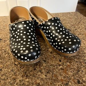 Sanita clogs women’s size 41 aka 9-10 black and white polka dot design used as shown