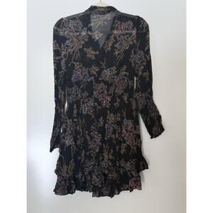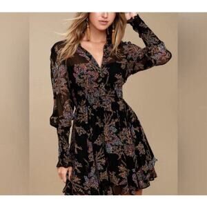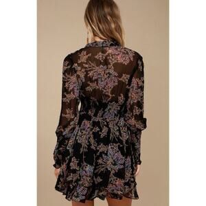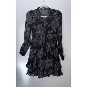 Free People Mini Dress Floral Chiffon Sheer OB677093 Black Combo Medium