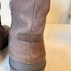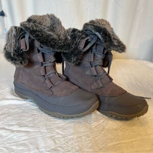 North Face Boots Nuptse Purna Gray&Brown Suede Faux Fur Trim Mid Calf Women’s 9