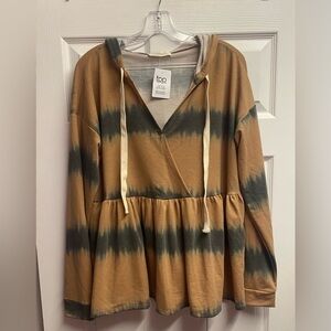 NWT Entro Boutique Brand Camel Tie Dye Hooded Tunic Sweatshirt Size Large