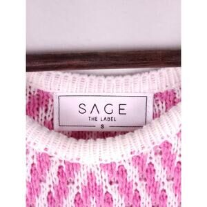 SAGE The Label Pink White Chevron Knit Halter Long Dress Size S Front Slit