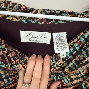 A beautifully constructed designer dress with elevated draping and a unique textile-inspired print.