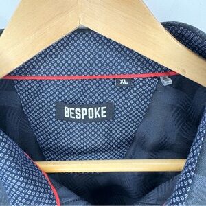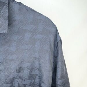 Bespoke Men’s Button-Down Collared Shirt Subtle Tonal Pattern Navy Blue Size XL