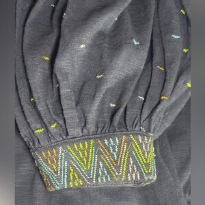 Details: Lacing details and colorful embroidery add plenty of vintage character to this swingy balloon-sleeve tunic.