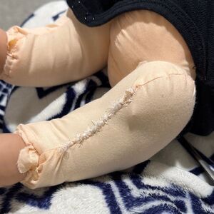 This adorable baby doll comes dressed in a stylish gray outfit, perfect for imaginative play. The soft fabric and realistic design make it a delightful companion for your child.
