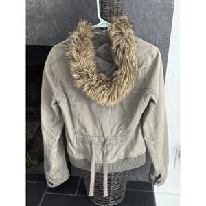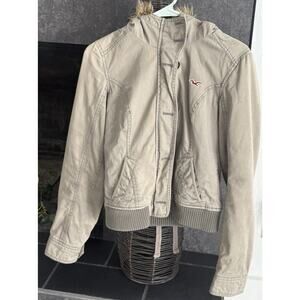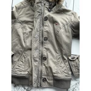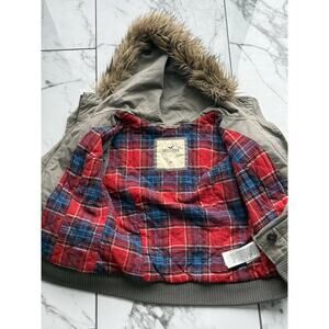 VTG HOLLISTER GRAIL Y2K Olive Bomber Flannel Lined Detachable Fur Trim Hoodie