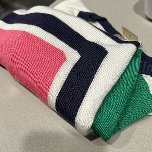 The lil wear and tear there is is a small Knick in the thread as seen in the last photo, on the navy blue part.