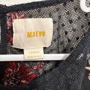 Anthropologie Maeve cadiz mesh black embroidered floral top with ruffled sleeves, size large.