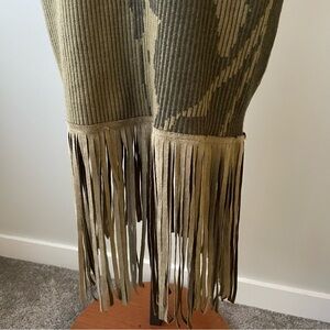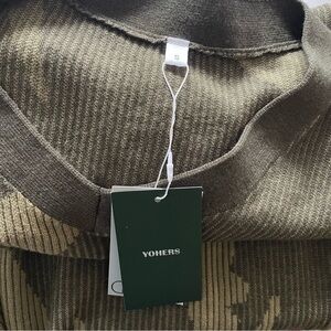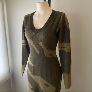 Yohers Olive Camo Knit V-Neck Fringe Hem Bodycon Dress Midi Camoflauge Small NWT