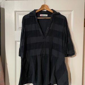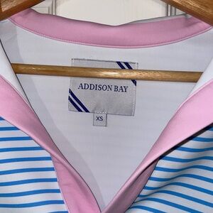 Chic top with pink collar and blue stripes. Perfect for casual wear.