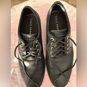 COLE HANN BLACK LEATHER OXFORDS SIZE: 9.5