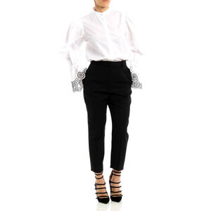 Sharp, impeccably cut tailoring is an Alexander McQueen signature. Grain de poudre wool cigarette trousers detailed with concealed zip and hook fastening, belt loops, slit pockets, crease and a rear welt pocket. These woven pants are cut with straight legs that hit a few inches above the ankle. Wear yours with a statement blazer.