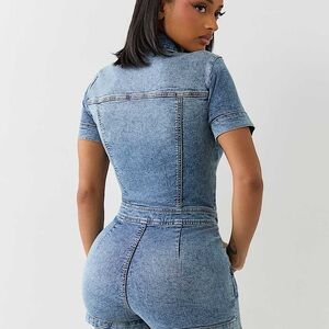 True Religion Blue Denim Short Sleeve Jumpsuit