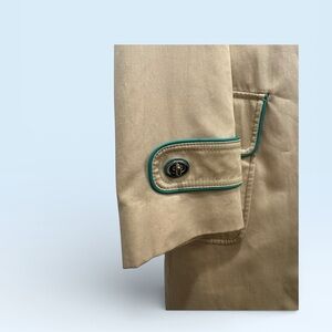 Design: A classic, mid-length khaki or beige trench coat that is often described as lightweight and suitable for year-round layering.