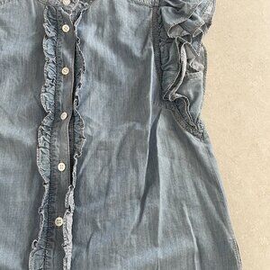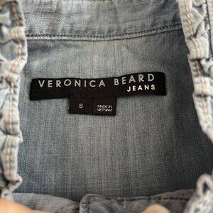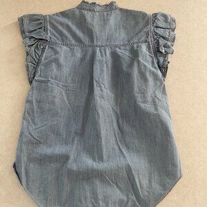Veronica Beard Jeans Women's Small Button Down Cap Ruffle Sleeves Shirt Blue
