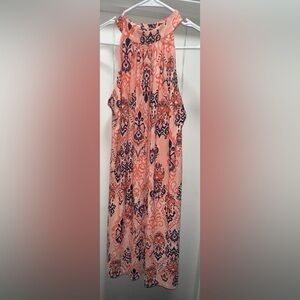 Nine West Sleeveless Halter Shift Dress – Soft Coral Print | Size 14 (XL)