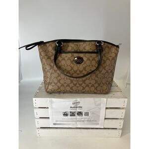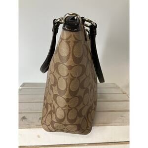 COACH F19816 LARGE TAN, BROWN PVC SIGNATURE PRINT HANDBAG