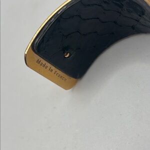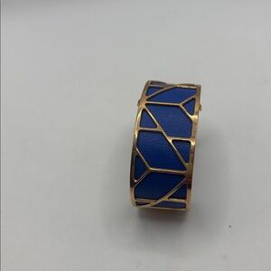 Stylish cuff bracelet with a blue geometric design and gold accents. Perfect for adding a touch of elegance to any outfit. This is used has some wear overall good shape
