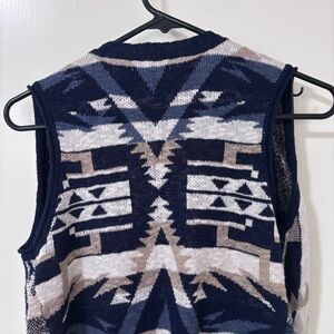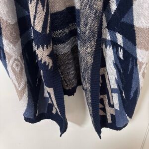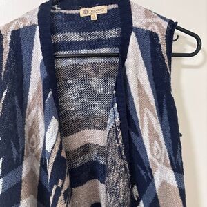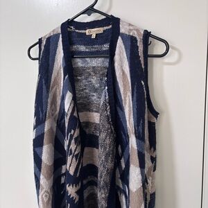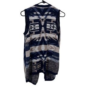 Democracy Navy and Beige Geometric aztec print sleeveless open cardigan size S
