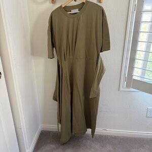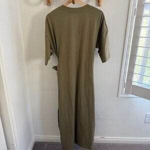 Modern Citizen NOA organic cotton t-shirt wrap olive khaki midi dress tie detail