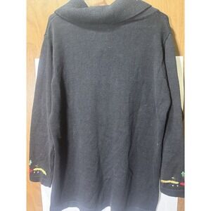 Victoria Jones Black Sequin Beaded Sweater M Gold Red Green Vintage Sweater