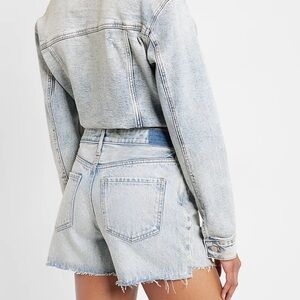 NWOT Express Boyfriend MIDI Blue Jean Shorts with Relaxed Fit and Frayed Hem