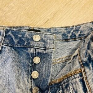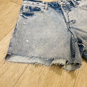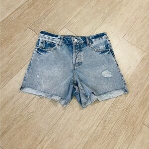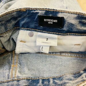 NWOT Express Boyfriend MIDI Blue Jean Shorts with Relaxed Fit and Frayed Hem Size 2