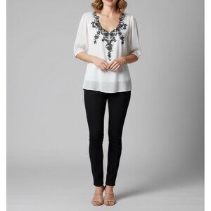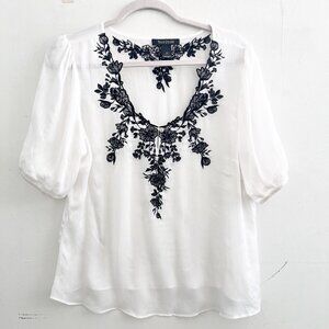 NEW White House Black Market Embroidered Blouse top Size 12 V-Neck