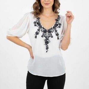 NWOT- NEW WITHOUT TAG! White House Black Market Embroidered V-Neck Blouse - Size 12