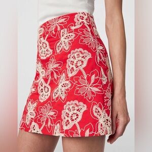 Ramy Brook Red Dawn Floral Mini Skirt Cotton A-Line
