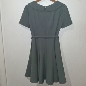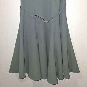 Beautiful dress for any special occasion! Self tie belt. Lined. Hidden zipper in the back. Unique neckline. Side pockets.
