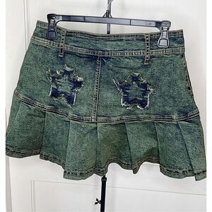 Hot Topic Denim Frayed Star Patch Pleated Mini Skirt Size Medium