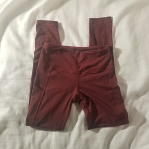 2 Pair, High Waist, High Compression, Wicking Leggings, 90 Degree By Refxlex _ Pockets on Both Sides, Color Cinnamon Cherry, Lab Joy_ Color Peach, Both Size Small, Both Very Good Condition