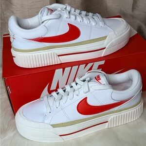 Nike Women's Court Legacy Lift White and Red Sneakers Athletic Shoes