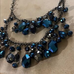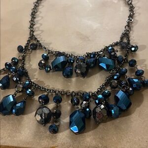 This stunning necklace features dazzling blue crystals, perfect for adding a touch of elegance to any outfit. The intricate design and shimmering stones make it a must-have accessory.