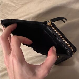 Elegant and compact, this Tory Burch wallet is crafted from high-quality black leather. Perfect for organizing your essentials with style.