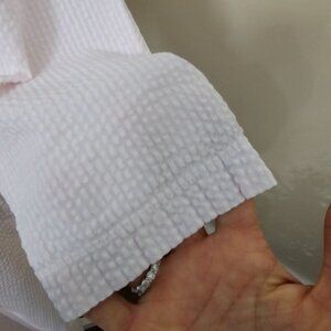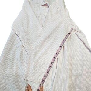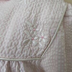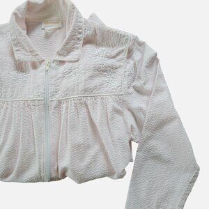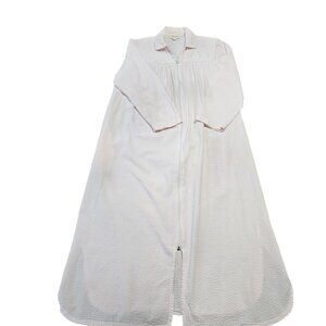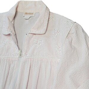 Vintage Barbizon Long Embroidered Nightgown Robe Nighty Peignoir Pajamas Pink - White Seersucker Women's Size S