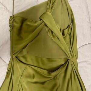 Zara Olive One Shoulder Satin Maxi Dress Size XS
