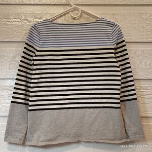 Talbots Randall Long Sleeve Striped Blue Top Women Petite Small 100% Cotton