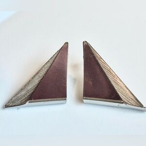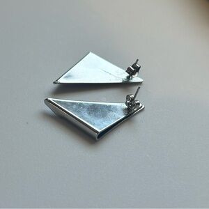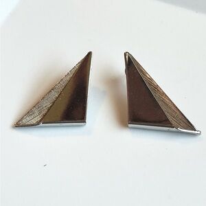 Vintage Silver Triangle Stud Earrings 80s Geometric Modernist Statement